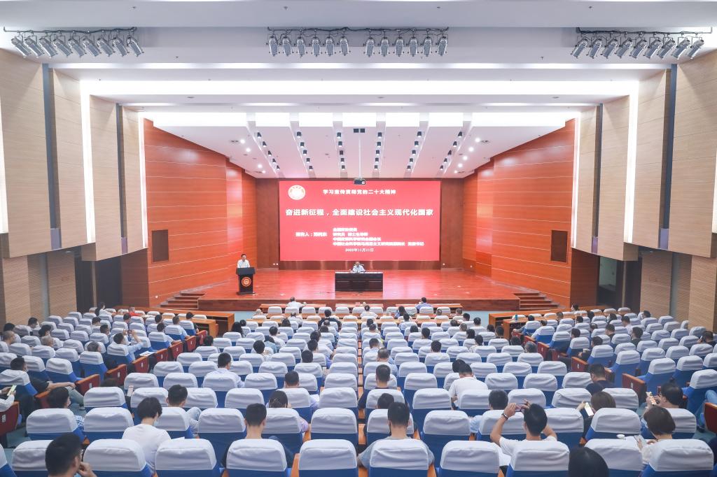 11月11日下午,我校邀请全国政协委员,研究员、博士生导师,中国政策科学研究会副会长,中国社会科学院马克思主义研究院原院长、党委书记邓纯东来校作学习宣传贯彻党的二十大精神专题辅导报告。在家校领导出席报告会,机关各部处(含教辅机构、其他机构)主要负责人,各二级学院党委书记、院长(含主持工作副院长),机关副科级以上干部参加报告会。报告会由校党委书记沈灿煌主持。
