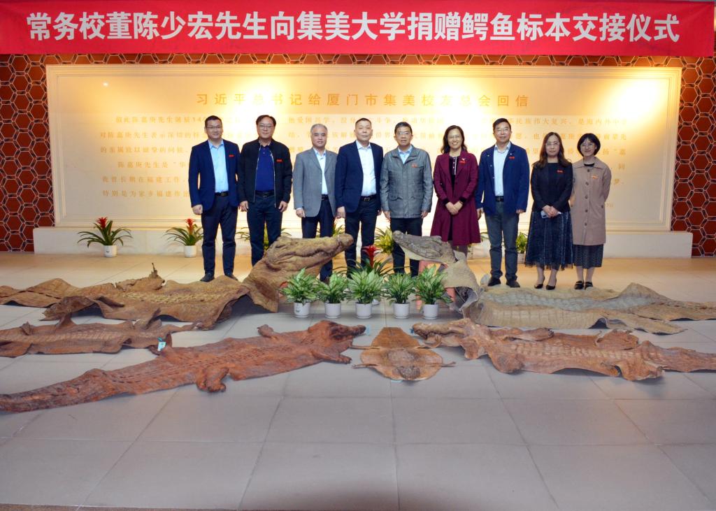 11月30日下午,我校常务校董、中国侨商会副会长、加拿大集美校友会会长、集美区侨联名誉主席、南顺投资董事长陈少宏先生再次向我校捐赠7件鳄鱼皮标本。陈少宏先生、校长李清彪,校党委宣传部、国际合作交流处、水产学院、自然科学馆等相关单位负责人出席交接仪式。