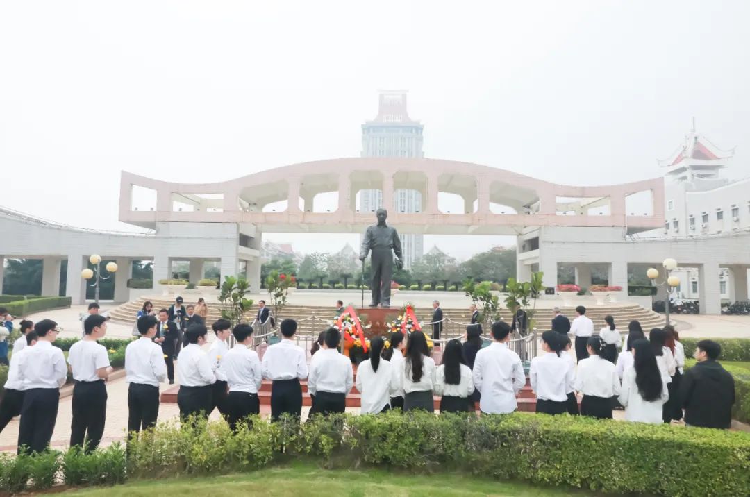 又是一年清明时。4月4日,全体在家校领导与师生代表祭扫了学校东门嘉庚铜像。校党委书记沈灿煌、校长李清彪上前整理挽联,全体人员向陈嘉庚先生铜像三鞠躬,环绕铜像一周并瞻仰铜像。