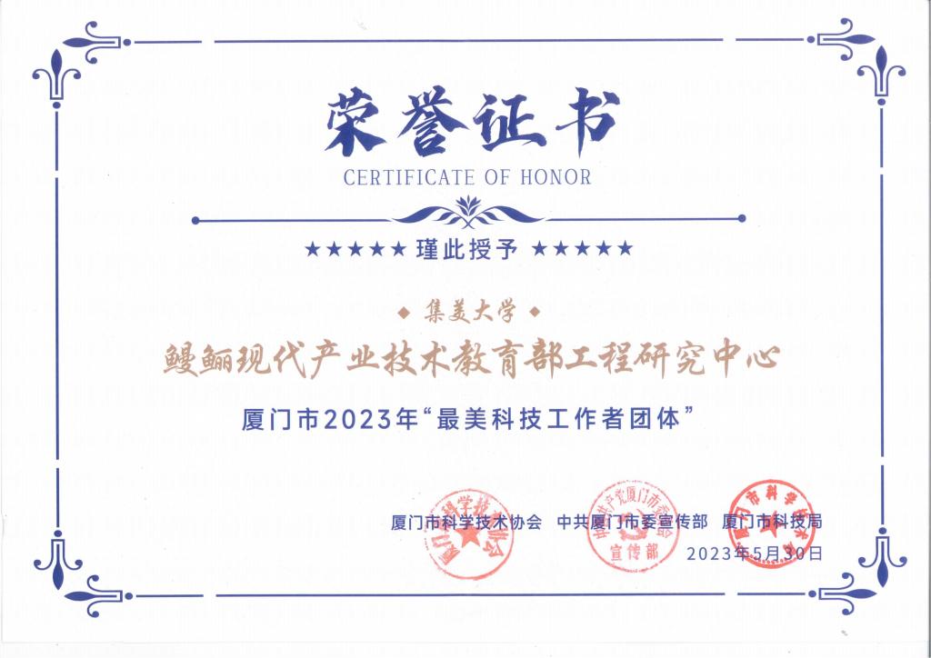 5月30日,厦门市科学技术协会、中共厦门市委宣传部、厦门市科技局在厦门市湖里区联合举行了“点亮精神火炬 闪耀科技未来”2023年厦门市“全国科技工作者日”暨厦门市2023年“最美科技工作者”“最美科技工作者团体”学习宣传活动,共授予全市“最美科技工作者团体”10个、“最美科技工作者”10名。我校“鳗鲡现代产业技术教育部工程研究中心”入选“最美科技工作者团体”。