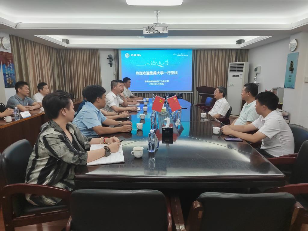 在中海油服船舶湛江作业公司,双方就校企合作、毕业生招聘等进行交流。李清彪指出,中海油服是我国近海市场最具规模的综合型油田服务供应商,也是国内唯一一家进入世界500强的海洋石油工程服务公司,希望越来越多的集大优秀学子能进入中海油服工作。中海油服船舶湛江作业公司党委书记、经理赖学明表示,集大毕业生专业知识过硬、工程能力强、职业素养高,一大批集大校友已成长为公司中坚力量,为公司高质量发展发挥了重要作用,希望集大能为中海油服输送更多的优秀人才。