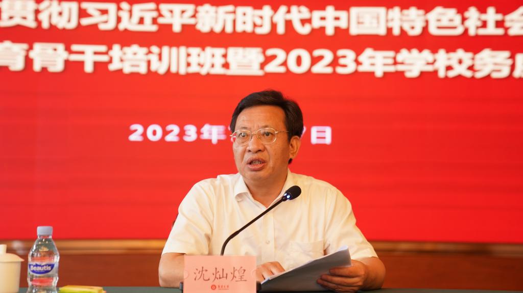 校党委书记沈灿煌做培训动员报告,他指出,此次开班动员会既是一次动员部署大会,也是一次党性教育大会,目的是牢记嘱托,发挥示范作用,推动全校师生在主题教育中深入学习贯彻习近平新时代中国特色社会主义思想;破解瓶颈,聚焦调研任务,全面推动学校新一轮“大改革、大调整、大发展”;统一思想,凝聚发展共识,动员全校师生坚定信心、团结奋斗,奋力开拓学校高质量发展新局面。