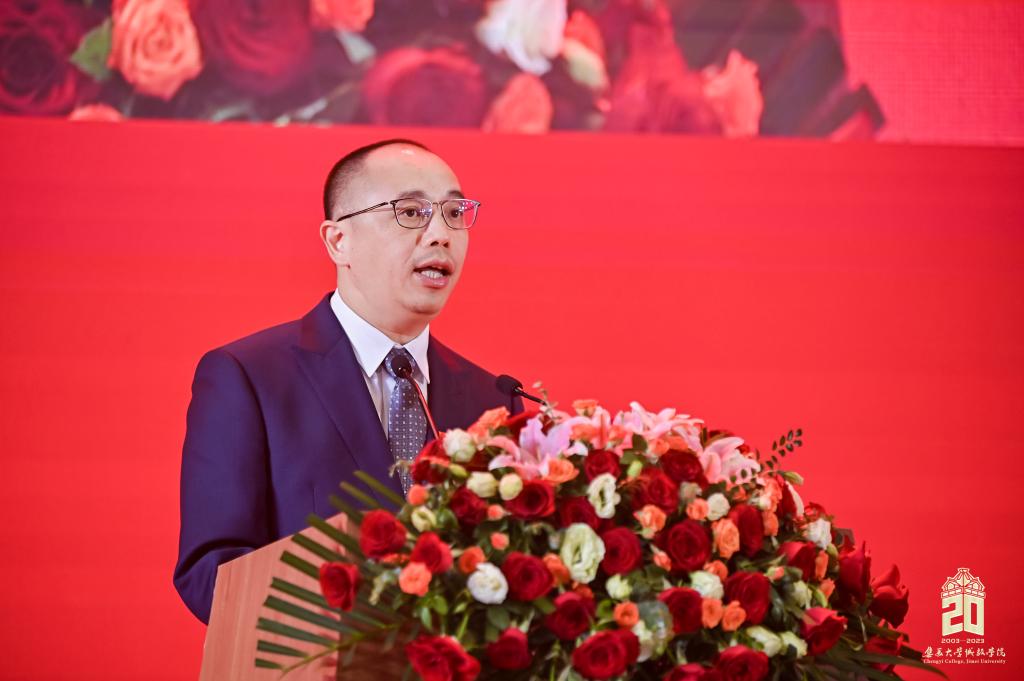 大会由诚毅学院党委书记罗钫主持,陈嘉庚长孙陈立人先生为学院20岁生日发来祝福视频。