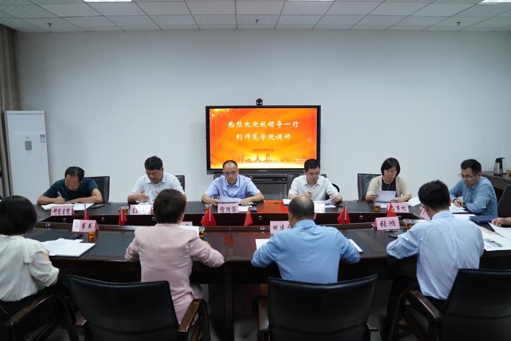 调研中,谢潮添听取各学院关于学院基本情况、学科建设、人才培养、科学研究、发展规划和建设思路以及面临的困难等方面的工作汇报,并就各学院提出的问题及需要学校支持的事项逐一作了回应。他指出,当前学校发展面临前所未有的机遇和挑战,各学院要进一步统一思想,凝聚共识,强化使命担当,推动学校事业高质量发展再上新台阶。他强调,一要加强学科建设顶层设计,进一步凝练学科方向和特色,根据学科建设需求和博士点申报有针对性地引进人才,补齐短板,强化特色。二要努力提高人才培养质量,进一步在专业建设、课程建设、教材建设、团队建设、教学改革、课堂管理等方面发力,努力提高学生升学率,严格控制教师调课,降低调课率。三要扎实做好本科教育教学审核评估迎评准备工作,进一步强化紧迫感和使命感,对标对表,落实责任,细化举措。四要努力提升科研综合实力,进一步强化有组织的科研,加强项目储备库建设,谋划大项目,力争国家级重大重点项目、国家基金项目有新的突破。五要做实做细师生思想教育工作,进一步落实意识形态工作责任制,及时了解师生思想动态,切实关心师生员工的学习和生活,并加强日常管理工作。六要凝聚各方力量,进一步争取国家、省、市相关部门以及社会各界、校董校友的支持,增加学校建设发展资金,全力保障学校“双一流”建设。