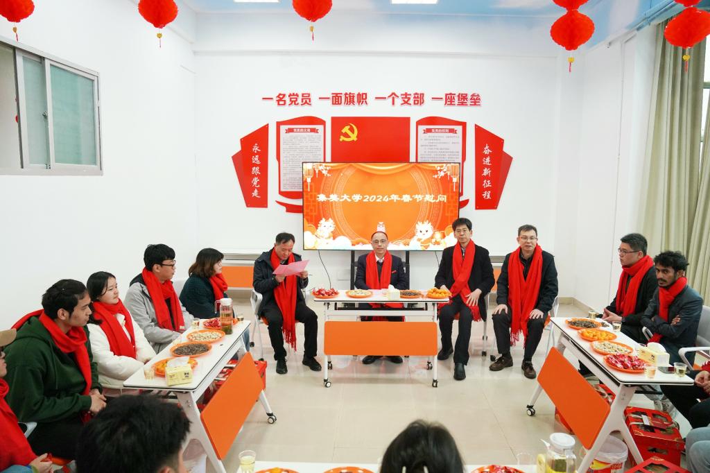 谢潮添代表学校向全体教职员工、物业保安人员的辛勤工作表示崇高敬意,向集美交警、学村派出所、消防救援大队、城管中队长期以来的支持表示衷心感谢。他简要回顾了学校2023年各项事业取得的新成绩新进展,勉励大家奋勇向前,加快建设“工海”特色更加鲜明的一流大学。