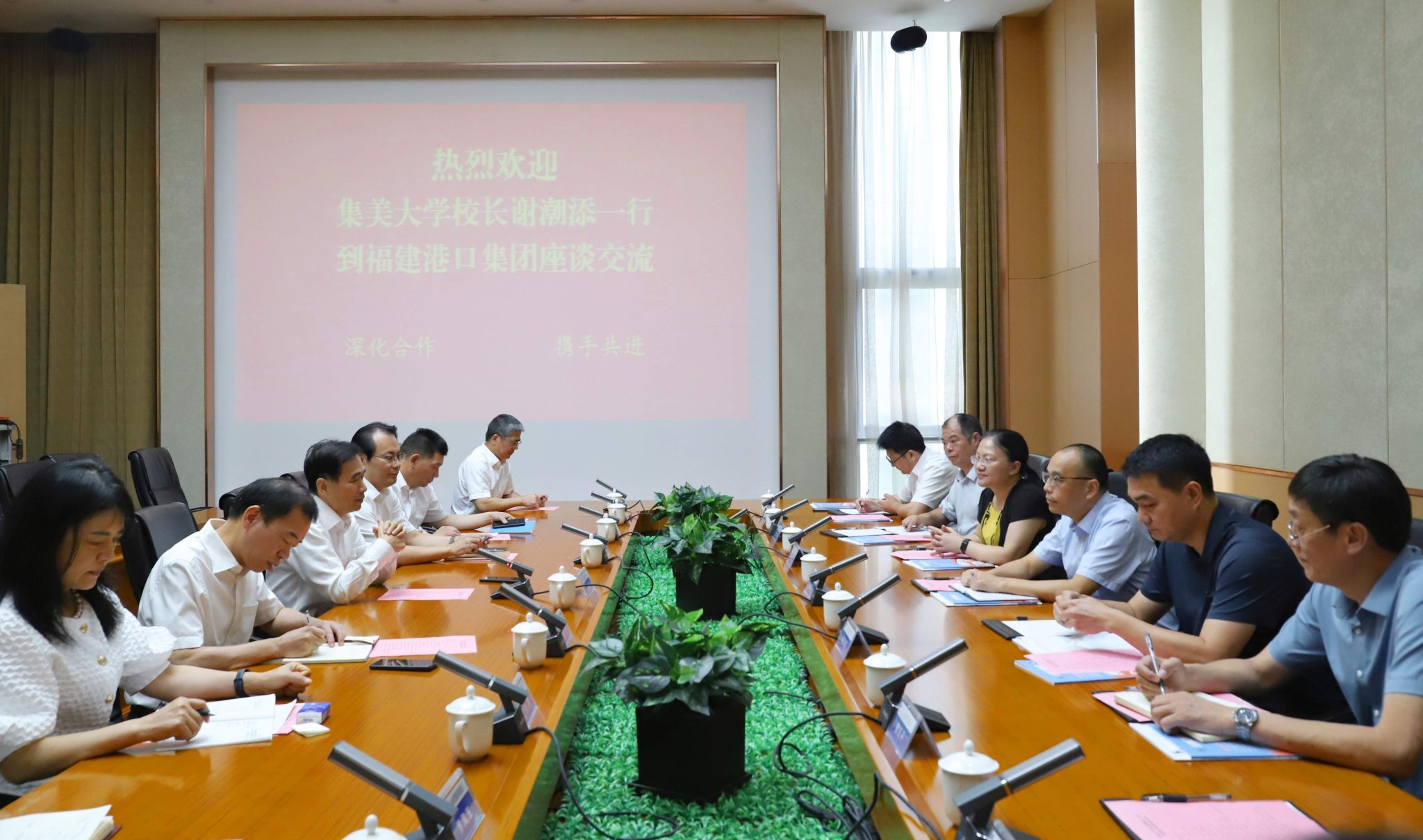 6月19日,校长谢潮添一行走访福建港口集团,与集团党委书记、董事长陈志平,党委委员、副总经理朱勇进等座谈交流。双方就加强校企合作、深化产教融合等进行深入探讨。