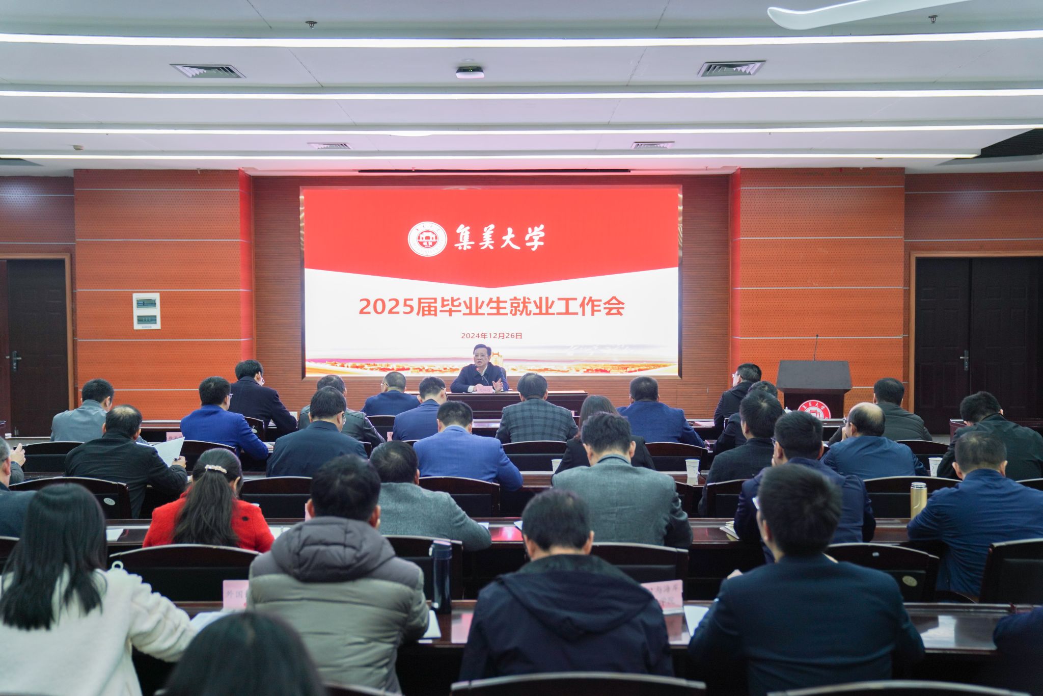 12月26日下午,我校召开2025届毕业生就业工作会。校党委书记沈灿煌、校长谢潮添、校党委副书记洪文建、副校长黄新华,校学生就业工作领导小组成员单位主要负责人,各学院主要负责人、党委副书记,负责就业工作老师、毕业班辅导员参加会议,会议由黄新华主持。