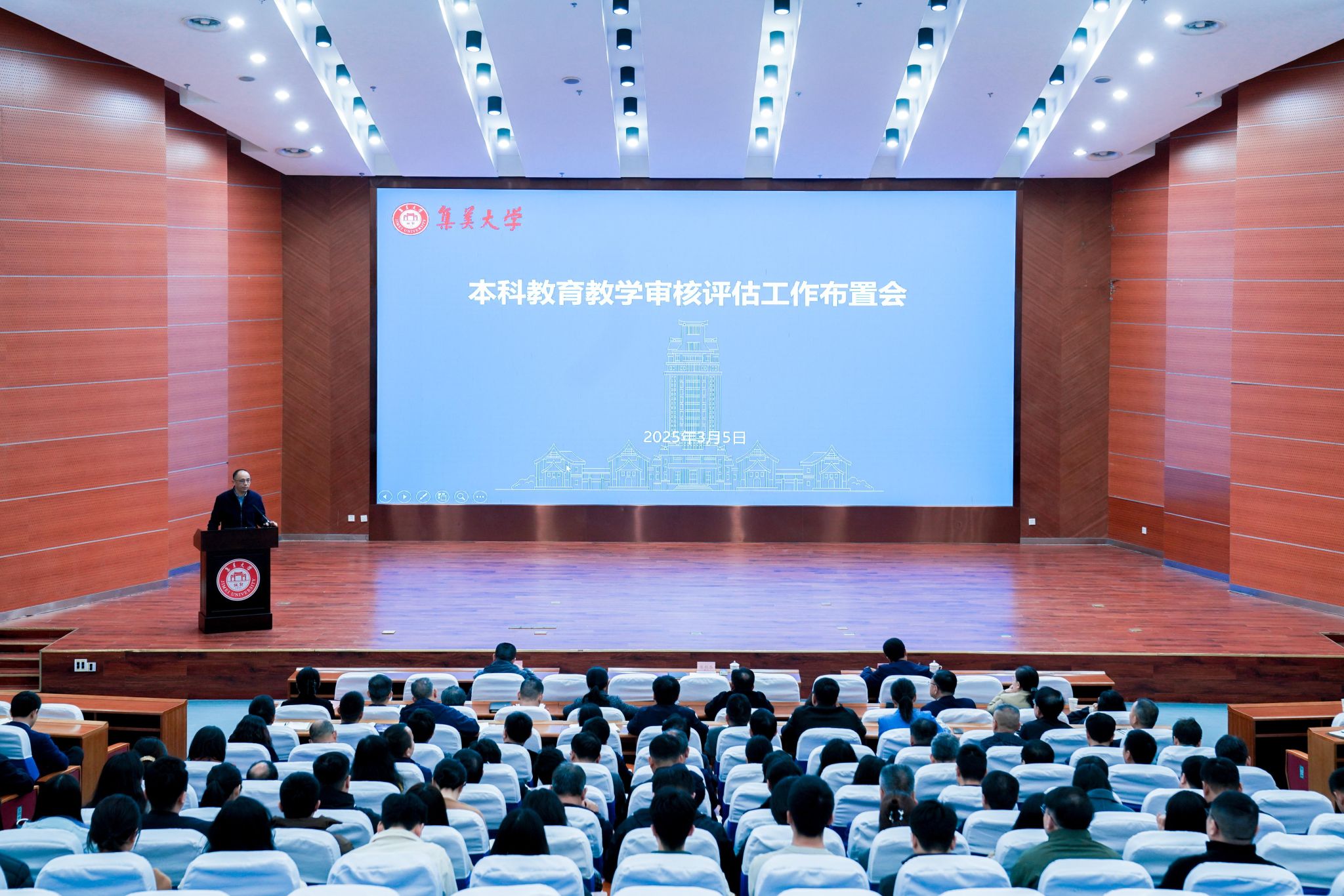 3月5日上午,校长谢潮添在尚大楼105报告厅主持召开审核评估工作布置会。副校长黄新华,机关部处、教辅单位副处级及以上干部,各学院党委书记、院长、分管教学工作副院长,校教学督导组成员,审核评估联络员参加会议。