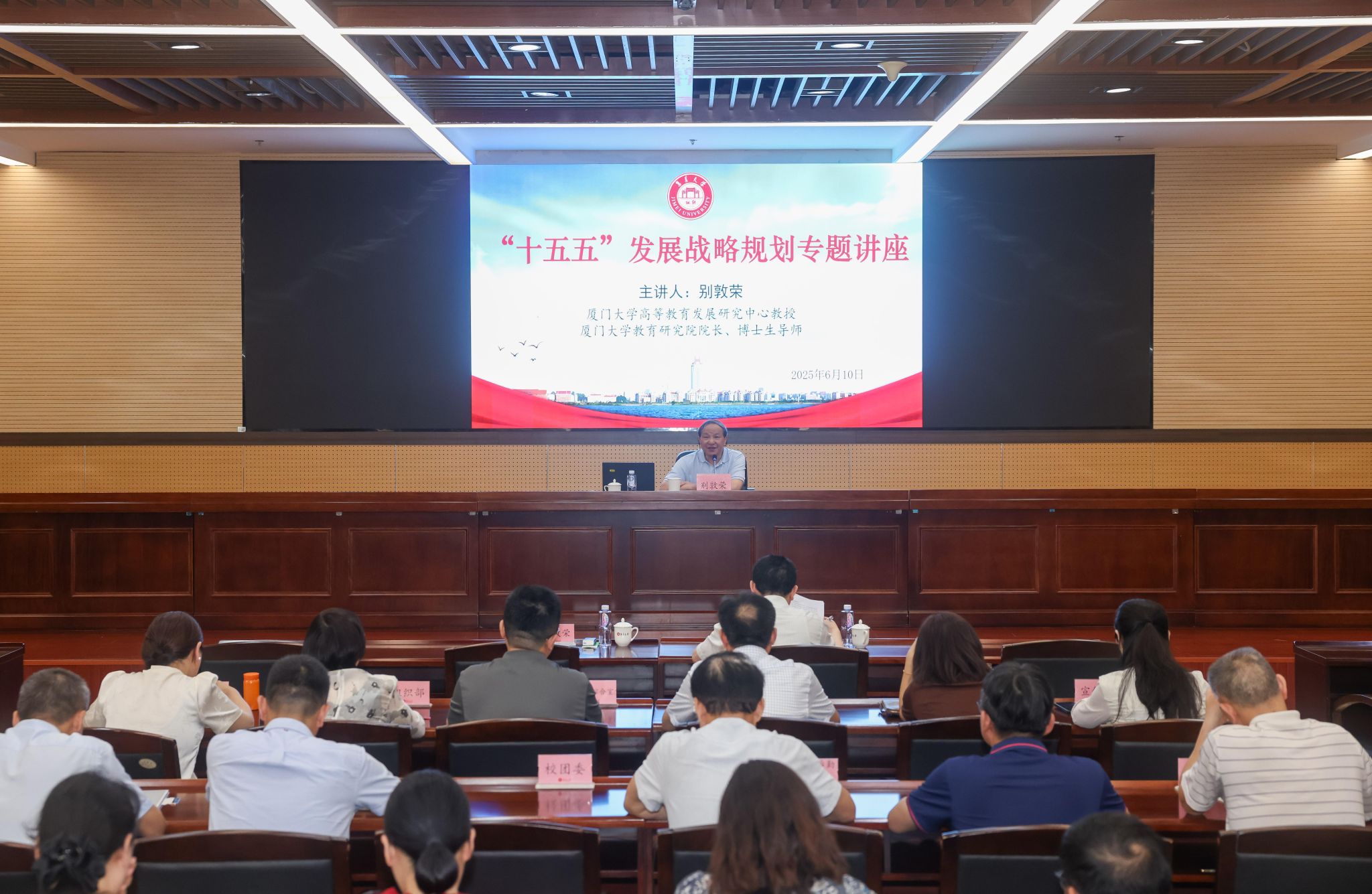 6月10日,高等教育研究领域权威专家、厦门大学教育研究院院长别敦荣教授应邀来校作题为《“十五五”时期高水平大学发展战略重点与规划编制要求》的专题辅导讲座。校党委常委、黄新华副校长主持讲座,校内各单位主要负责人以及各重点专项规划、学院规划编制工作相关负责人参加学习。