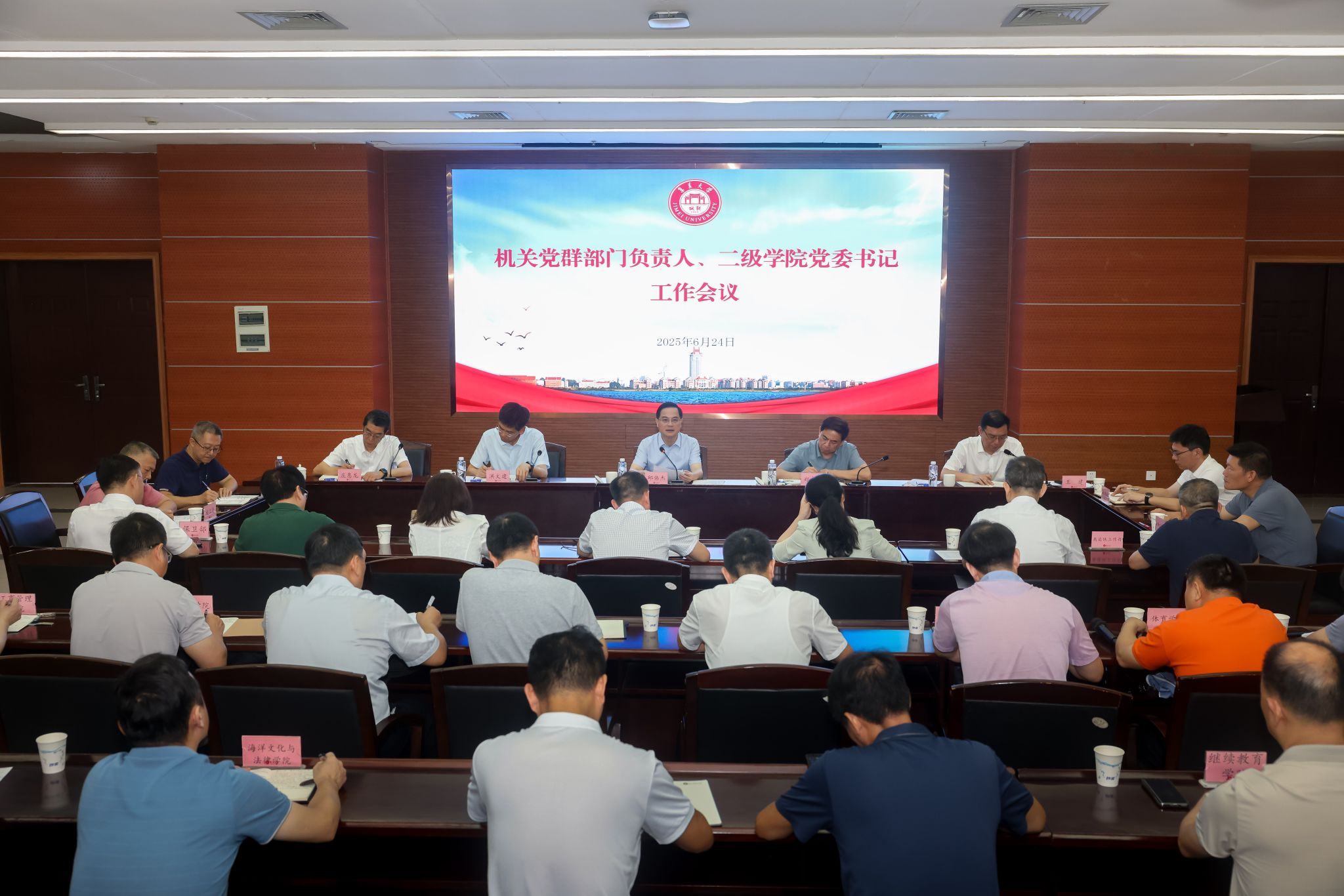 6月24日,校党委书记邱伟杰主持召开机关党群部门负责人、学院党委书记工作会议。校党委副书记郑志谦、洪文建,校党委常委、副校长王建,机关党群部门负责人和各学院党委书记参加会议。
