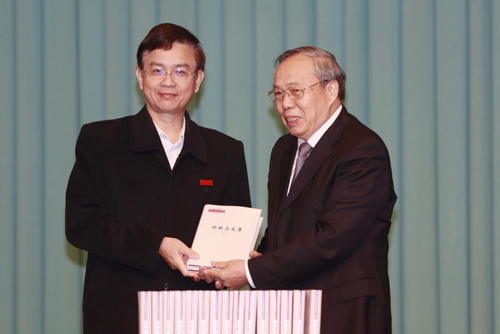 报告会上,学院聘请郑新立担任诚毅学院顾问,诚毅学院董事会副董事长辜建德为郑新立颁发聘书。郑新立向学院赠送了2016年出版的《郑新立文集》(一套16卷),诚毅学院院长叶光煌代表学院接受赠书。