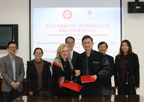 1月16日,美国伊丽莎白大学(The College of Saint Elizabeth)校长Helen J. Streubert博士一行莅临诚毅学院交流访问。学院院长叶光煌在景祺楼15楼会议室会见来访客人,双方共同签署了战略合作协议。美国伊丽莎白大学中国总校区校长助理黃磊康博士,学院管理系有关负责人、对外交流合作部相关老师参加了签约仪式和座谈会。