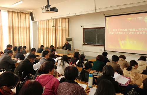 3月1日下午,机械与能源工程学院在大唐楼212召开学院四届三次教职工大会暨工会会员大会,全院教职工和工会会员参加了会议。会议由学院党委书记田建和主持。