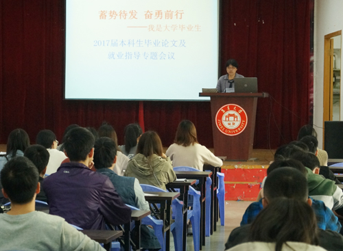会上,学院副院长郭玉清结合《亚洲中文精品乱码本科毕业设计(论文)工作管理规定(修订)》文件要求,阐述了毕业论文教学环节在人才成长中的重要性,详细解读了本届毕业论文要求的新规定,强调了毕业论文实施过程的时间安排和各时间点应该完成的内容及其考核方式。学院有关老师还就毕业生关心的就业政策、报到证、档案、户口等相关问题做详细的说明,提醒他们认真核查自身课业情况、公共选修课学分和学分总数。