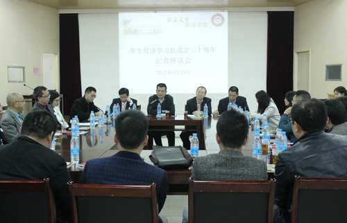 3月25日下午,财经学院在办公楼二楼多功能厅召开经济学习社成立三十周年纪念座谈会。学院院长梁新潮、党委书记周邵生,学校校友会办公室有关人员以及经济学习社各届社员参加了座谈会。