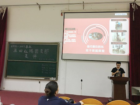 4月7日晚,食品与生物工程学院2016-2017学年“五四红旗团支部”评选在灿英211举行。