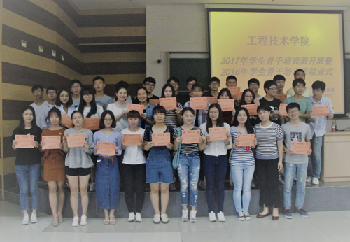 4月19日,工程技术学院举办2017年学生骨干培训班开班式暨2016年学生骨干培训班结业式。