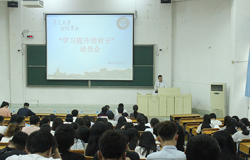 为推进学风建设,培养学生良好的学习习惯,5月3日下午,财经学院召开“学习提升结对子”活动动员会,拉开了学院“学习提升结对子”活动的序幕。学院党委副书记陈志鸿、各系辅导员,及“结对子”活动志愿者和帮扶对象参加了会议。