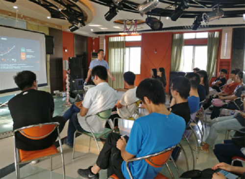李庆昌以融水破冰游戏为开头,围绕游戏设计、现场表现等方面讲解相关专业知识,分享科创工作心得。他从细则、流程、思维模式等方面详细介绍了科创委员的工作职能和具体方向,建议学生基于产品研发和调查后进行创业;并以“跨境电商商业模式”为例,希望科创委员在企业交流、了解政策、掌握创业技巧等方面得到提升,更好地做好服务工作。