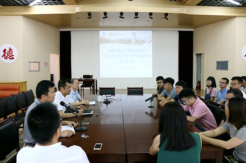 6月9日下午,财经学院召开2017届毕业研究生“走好社会人生第一步”廉洁教育座谈会。学院领导、研究生导师和2017届全体毕业研究生参加了座谈会。