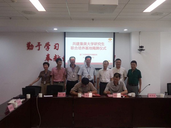 7月11日上午,财经学院与厦门市国税局稽查局共建研究生联合培养基地揭牌仪式在厦门市国税局稽查局举行。财经学院院长梁新潮、党委书记周邵生,厦门市国税局副局长陈健、稽查局局长张连发以及双方相关人员参加了仪式。