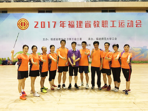 9月22日-24日,2017年福建省教职工运动会在福建师范大学体育中心举行。经过顽强拼搏、团结协作,我校教工羽毛球队获得羽毛球团体比赛第四名,扑克牌80分一队获得扑克牌80分比赛三等奖。