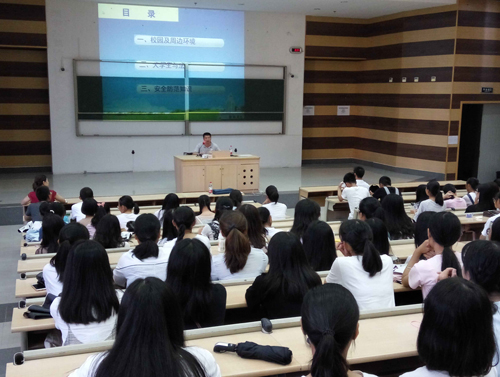 近日,校保卫处处长董振寿应邀到文学院做新生安全教育讲座。学院党委副书记陈娟,团委负责人、新生辅导员以及全体新生聆听了讲座。