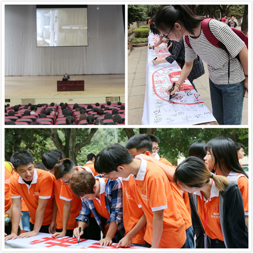11月8日,学院举行省级文明校园迎评签字仪式,现场宣读了学院学生会的迎评行动倡议书。学院学生在写着“创建文明校园,我知晓、我参与、我奉献”的倡议横幅上庄重地签上了自己的名字。当天下午,学院还专门召开了全体宿舍长大会,再次强调了宿舍内务整理要求和其他注意事项。