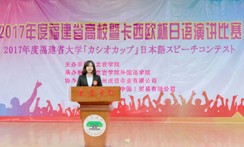 近日,2017年度福建省高校暨卡西欧杯日语演讲比赛在龙岩学院举行,来自福建省16所高校的选手参加比赛。经过激烈角逐,我校外国语学院日语专业学生殷若宜获三等奖。