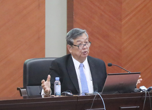 讲座中,傅崐成以国际海洋法的现况与中国的应对为主题,将理论同实际相结合,分析了条约法形成的历史状况、各国争端的核心、我国关于条约法的基本实践、国际上的执行机构及其全球效力等内容。