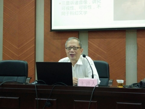 11月21日晚,厦门大学特聘教授、人文学院中文系博士生导师黄鸣奋教授在尚大楼105学术报告厅,为我校师生做题为“从科幻影视看移动互联网时代的艺术创意”的专场讲座,全校500多名师生聆听了讲座。
