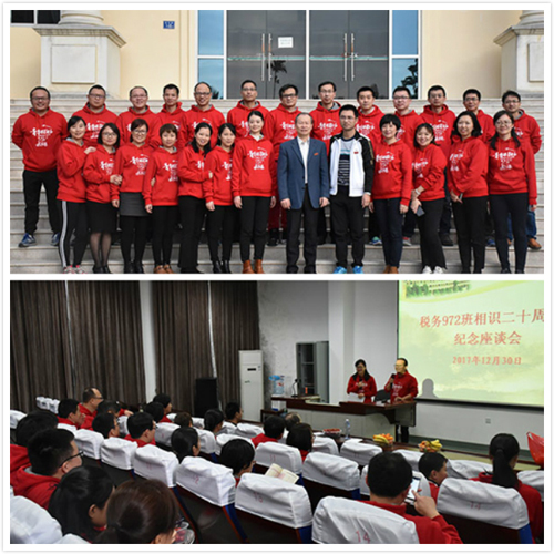 2017年12月30日下午,财经学院税务972班校友返校并在学院财媒体三楼举办了相识二十周年纪念座谈会。学院党委书记周邵生、相关老师和校友参加了座谈会。