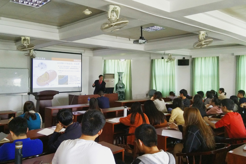 4月9日,台湾中兴大学生物医药工程研究所王惠民教授应邀来我校食品与生物工程学院访问交流,并作了题为“新颖抗氧化研究于食品+化妆品之应用”的学术报告。报告会由学院院长刘光明主持,学院各课题组教师代表及硕士研究生等60多人聆听了报告。