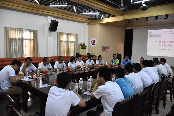 4月30日下午,财经学院举办经济08届学生毕业十周年纪念座谈会。学院院长梁新潮、党委书记周邵生、副院长黄阳平,相关老师及校友参加了座谈会。