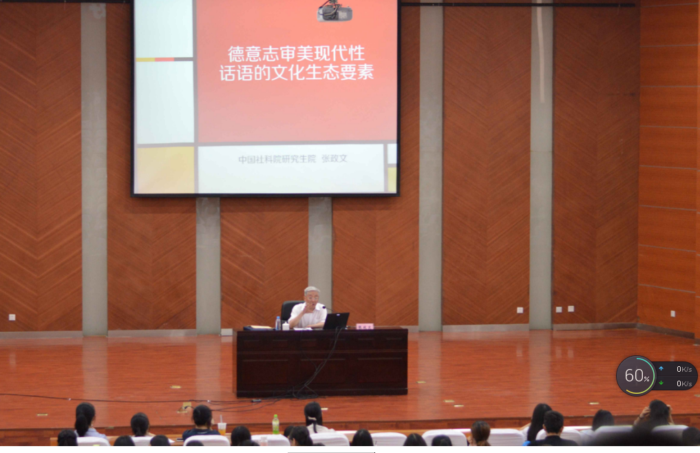5月19日晚,中国社会科学院大学党委书记、常务副校长张政文教授应邀在尚大楼105学术报告厅为我校师生做了题为“德意志审美现代性话语的文化生态要素”的学术讲座。我校500多名师生聆听了讲座。