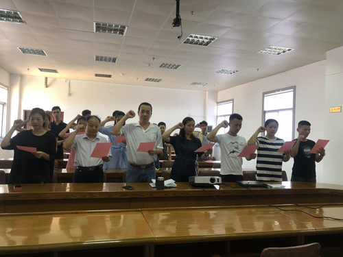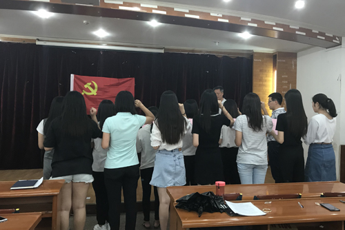 6月20日下午,财经学院举行新党员入党宣誓仪式。学院党委书记周邵生、副书记陈志鸿,各系辅导员及全体新党员参加了仪式。