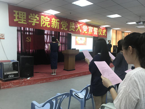 为加强对新党员的教育,近日,理学院举行新党员入党宣誓仪式。学院党委书记朱凤君、副书记王斌、团委有关负责人,全体辅导员、新党员参加了宣誓仪式。