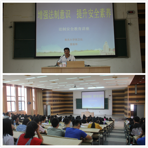 讲座中,董振寿结合自己多年工作经验及发生在学校、学生的真实案例,为新生分析了学校周边的潜在危险;结合《治安管理处罚法》《道路交通安全法》《刑法》等讲述了在校学生可能发生的违法行为;并从防火逃生、防盗防偷、防抢防骗、消费安全、交通出行、食品安全、游泳防溺、网络安全等方面提出了安全建议。董振寿还播放了多个校内外安全事故视频,以引起新生们对安全防范的重视。