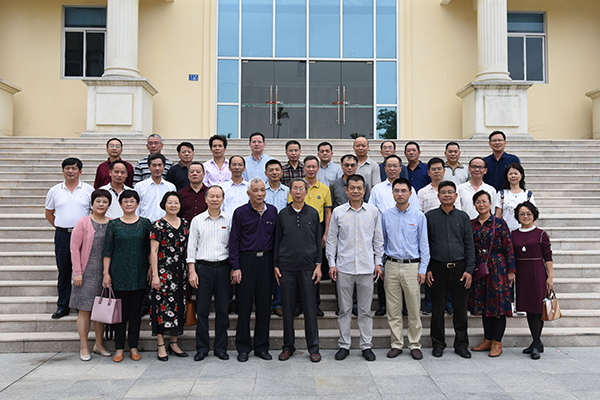 学院领导与校友在古龙大礼堂门前合影留念,并参观了尚忠楼群。