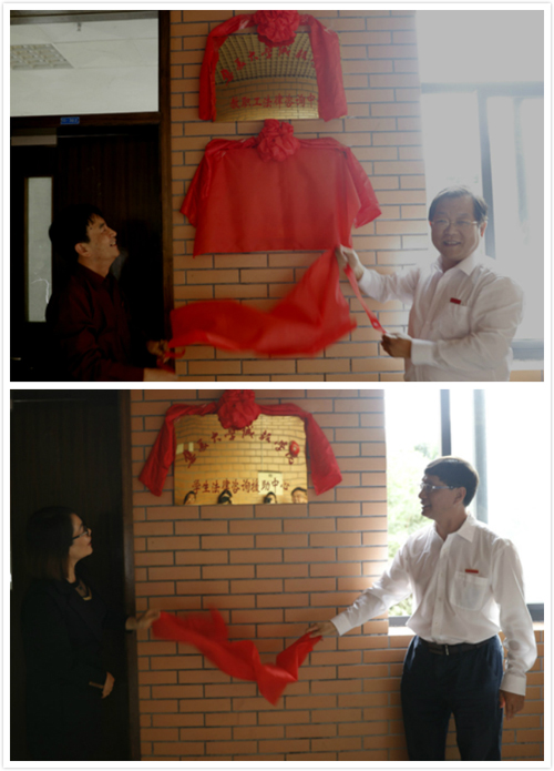 揭牌仪式上,朱晨光和朱宝荣为学院教职工法律咨询中心揭牌,连志崧和吴仁英为学生法律咨询援助中心揭牌,法学教研室负责人和张集森为法律诊所揭牌。