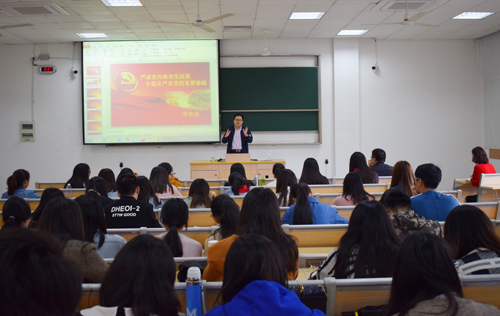 为学习贯彻习近平新时代中国特色社会主义思想,进一步提高学生党员、入党积极分子对党内政治生活严肃性的认知,11月28日下午,文学院习近平新时代中国特色社会主义思想学习社举办主题为“严肃党内政治生活是全面从严治党的重要基础”的辅导讲座。讲座由学院党委书记宋水安主讲,学院党委副书记陈娟、有关辅导员、学习社全体成员聆听了讲座。