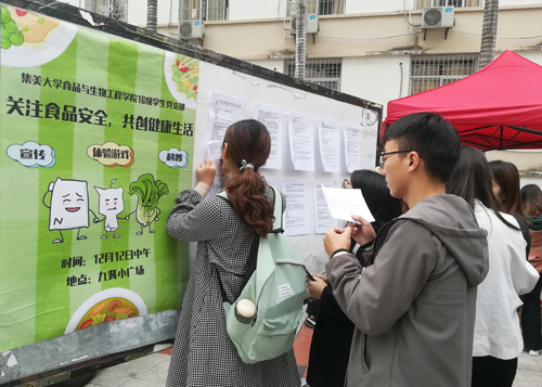 近日,食品与生物工程学院16级学生党支部在校第九餐厅广场开展“关注食品安全,共创健康生活”的主题党日活动。