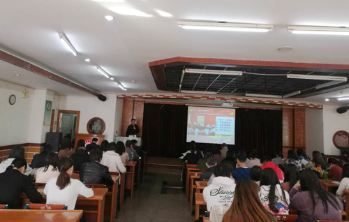 12月19日下午,海外教育学院组织师生学习习近平新时代中国特色社会主义思想,学院党委书记徐德辉为全院教职工、学生党员、入党积极分子及新思想学习社成员作了题为《遵循习近平总书记关于教育的重要论述 建功立业新时代》的专题辅导报告。报告会由学院党委副书记卢其乐主持。