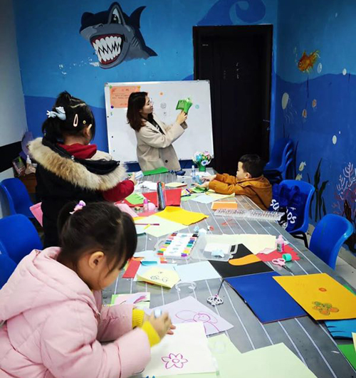 在艺彩工作站,美术学院在校学生在锻炼教学技能、教学方法、提高自身专业水平的同时,也发扬了志愿者无私奉献的精神,为社区服务、为群众做好事,启发了爱绘画的孩子们用画笔描绘美好的童年美生活。