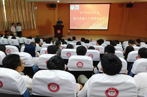 近日,水产学院举办2018年度海大卓越人才班颁奖仪式。学院院长张春晓、2018年度海大卓越人才班校内和企业班主任,福州海大饲料有限公司总经理罗洪昕校友出席了颁奖仪式。