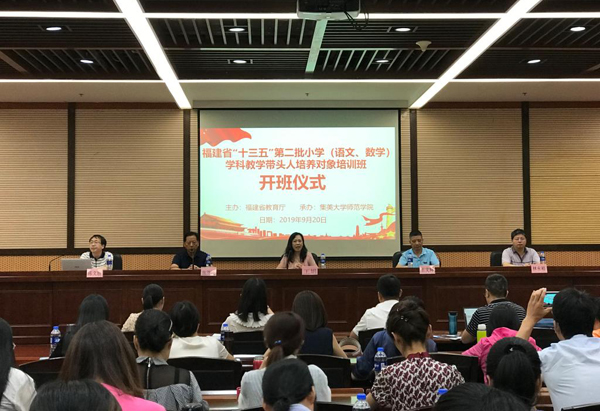 近日,师范学院在尚大楼103报告厅举行福建省“十三五”第二批小学(语文、数学)学科教学带头人培养对象培训班开班仪式。学院领导、培训项目负责人,全省遴选的32位(小学语文)和48位(小学数学)省级学科带头人培养对象,以及大田县和永定区委托的36位县区级小学(语文、数学)学科带头人培养对象参加了开班仪式。开班仪式由学院党委副书记王文辉主持。