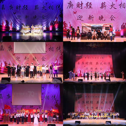 10月23日晚,为庆祝新中国成立70周年,财经学院在古龙大礼堂举办2019年“嘉庚财经、薪火相传”迎新晚会。学院党委书记兰莉芸、校团委副书记黄庆胜,学院党委副书记陈志鸿、各系辅导员以及2019级全体新生观看了晚会。