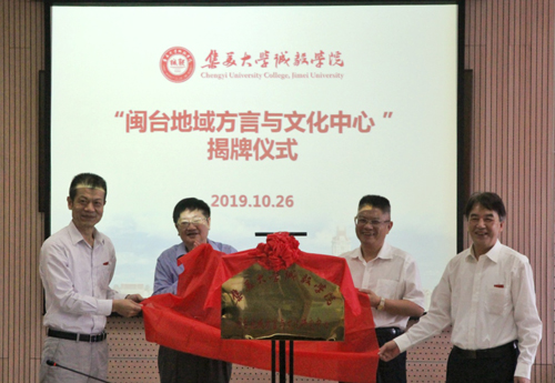 近日,诚毅学院闽台文化研讨会暨“闽台地域方言与文化研究中心”揭牌仪式在学院景祺楼17楼会议室举行。诚毅学院院长梁新潮、副院长朱宝荣,国务院学位委员会学科评议组成员、国家社会科学基金学科评审组专家、福建师范大学马重奇教授,国家社会科学基金学科评审组专家、湖南师范大学纪委书记唐贤清教授出席研讨会并为“闽台地域方言与文化研究中心”揭牌。