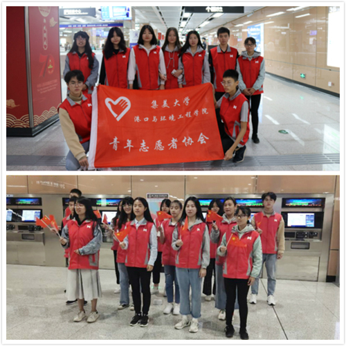 近日,港口与环境工程学院青年志愿者们到园博苑地铁站开展志愿服务活动。