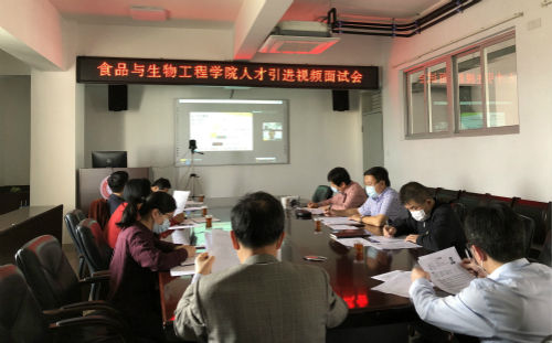 为减少疫情对学院工作的影响,确保疫情防控期间人才引进工作保持“在线”状态,4月10日下午,食品与生物工程学院举行人才引进视频面试会。会议由学院党委书记杨一青主持,学院其他领导、教授委员会成员作为面试评委参加了视频面试考核。